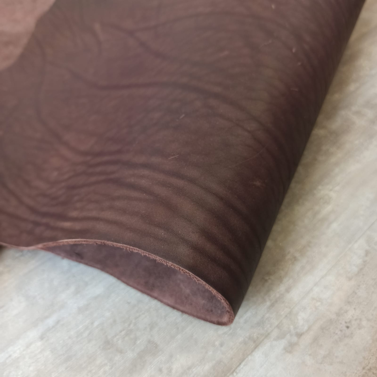 Шорно-седельная кожа в красте барабанного крашения (сквозной окрас), без покрытия.