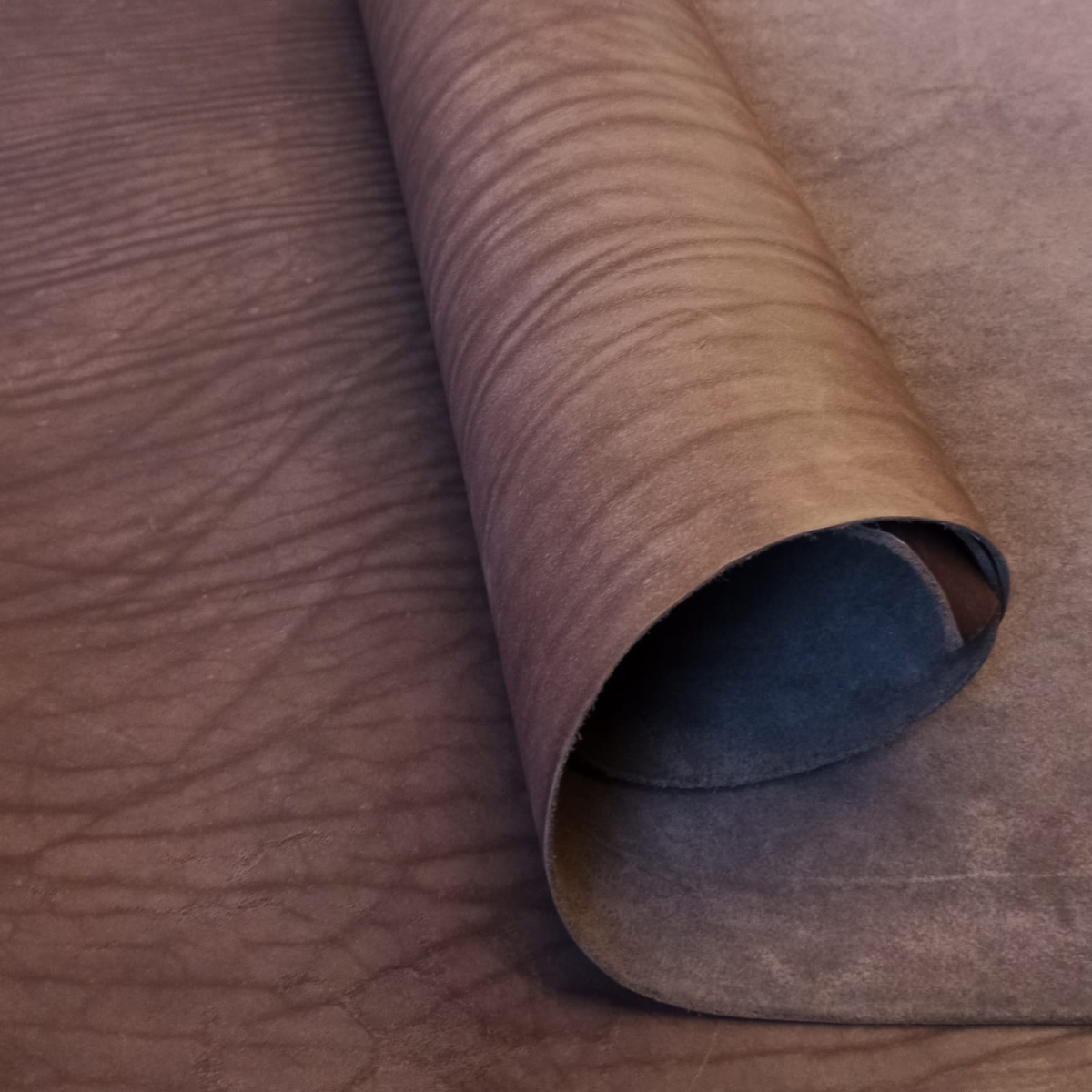 Натуральная кожа без покрытия (в красте), производства Россия. Толщина 2,1-2,5. Подходит для изготовления кошельков, сумок, ножен, ошейников, ремешков и прочих мелких изделий. В меру пластичная, не сухая, плотная. Бахтарма с низким ворсом. Сортность: без сорта.