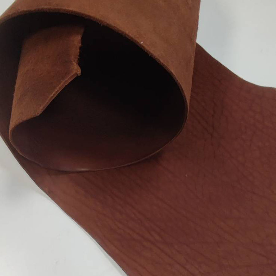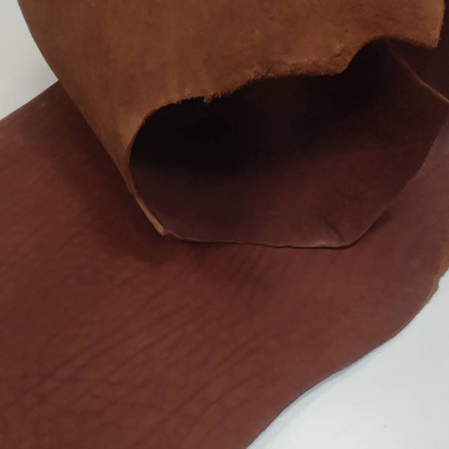 Шорно-седельная кожа в красте барабанного крашения (сквозной окрас), без покрытия.