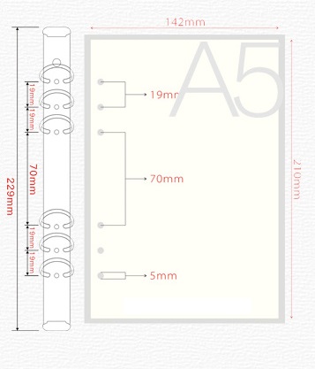 Сменный внутренний бумажный блок А5 для ежедневников.Размер листов: 142X210 мм, 6 отверстий для кольцевого механизма.