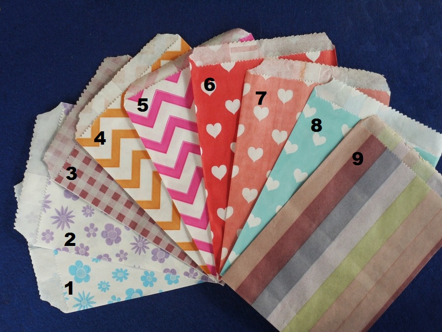 Плоские пакетики из тонкой крафт бумаги разных расцветок.