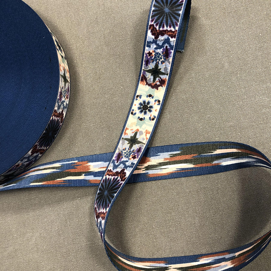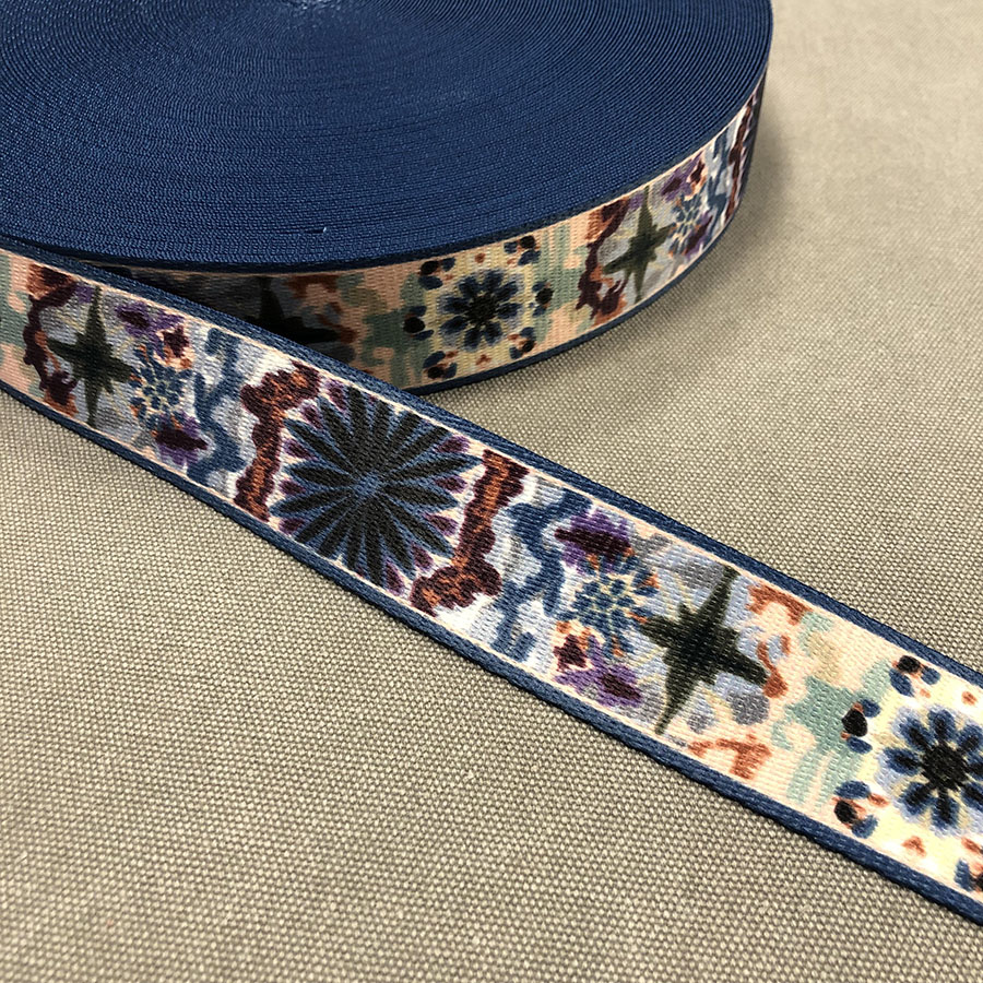 Плотная ременная лента (тесьма)из синтетических волокон. Текстильная стропа с ярким принтом - фантазийный рисунок