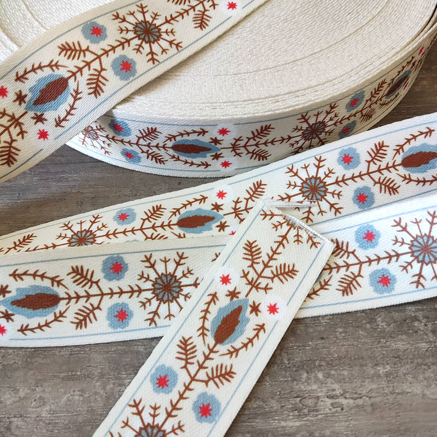 Лента ременная стропа 38 мм Снежные цветы п/э  L-JUN046 - фото товара
