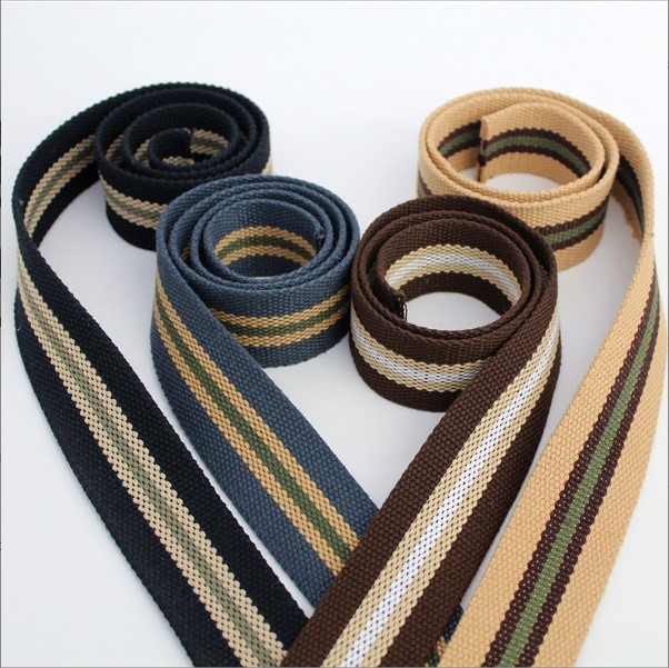 Плотная ременная лента с переплетением канвас, с классическим геометрическим рисунком - полоски сдержанных цветов.