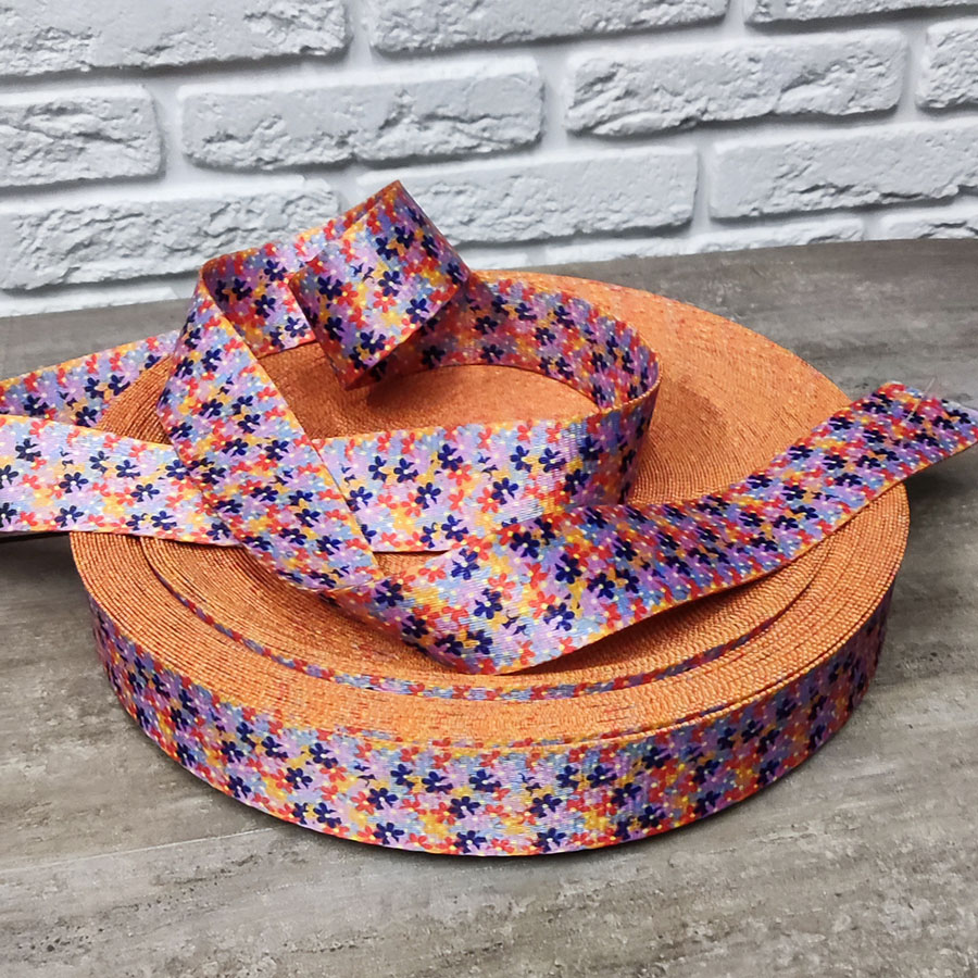 Стропа (ременная лента) средней плотности из синтетических волокон. Оригинальное цветовое сочетание текстильной стропы с ярким принтом украсит ваше изделие.