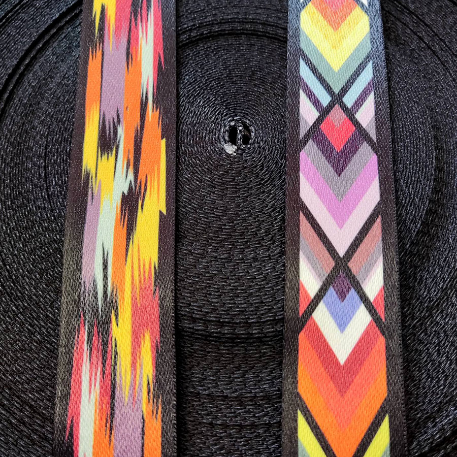 Стропа (ременная лента) плотная из синтетических волокон - с классическим геометрическим орнаментом черно-белой расцветки подойдет как для женских, так и для мужских галантерейных изделий.