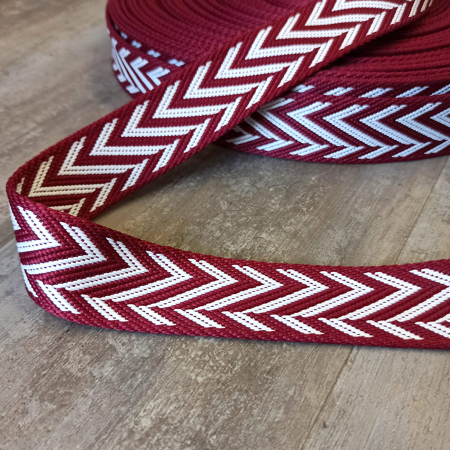 Мягкая ременная лента из синтетических волокон с жаккардовым переплетением. Оригинальное переплетение, рельефность и приятное цветовое сочетание текстильной ленты украсит ваше изделие.