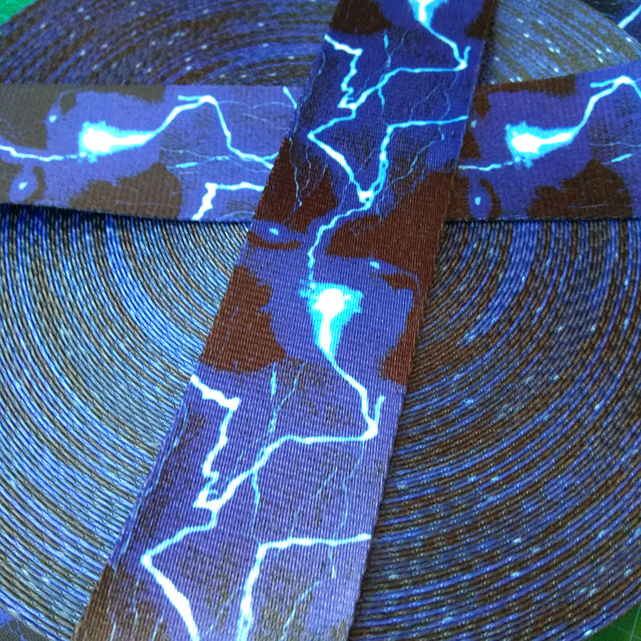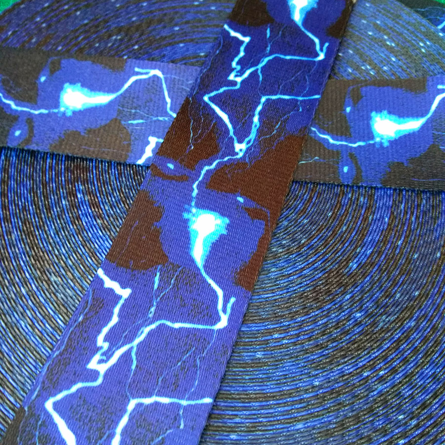 Стропа (ременная лента) средней плотности из синтетических волокон. Оригинальное цветовое сочетание текстильной стропы с ярким принтом украсит ваше изделие.