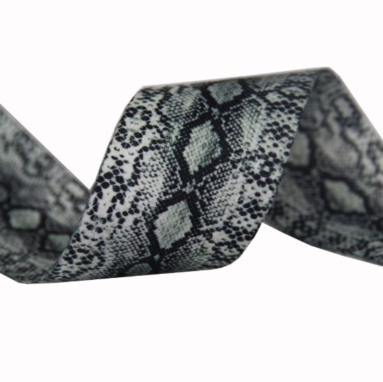 Плотная ременная лента из синтетических волокон. Оригинальное цветовое сочетание текстильной ремменной тесьмы с принтом под имитацию кожи питона.