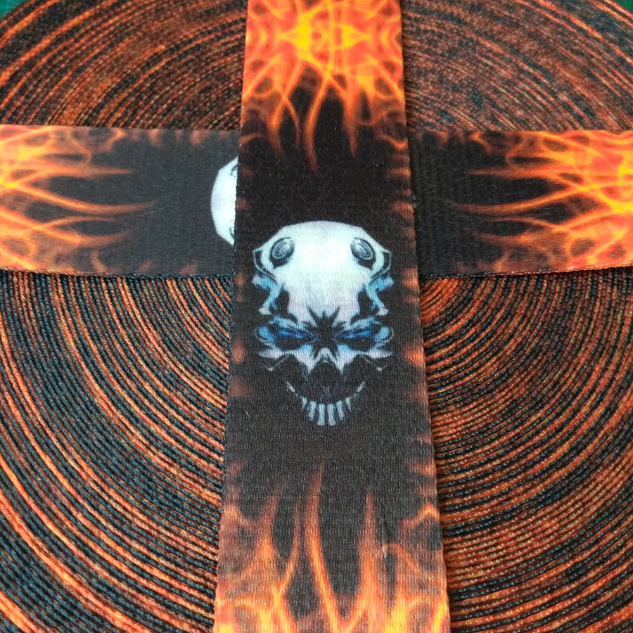 Стропа (ременная лента) средней плотности из синтетических волокон. Оригинальное цветовое сочетание текстильной стропы с ярким принтом (призрак с отблесками пламени) украсит ваше изделие.
