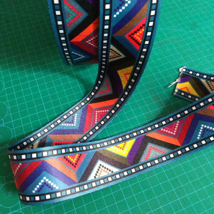 Плотная ременная лента из синтетических волокон. Оригинальное цветовое сочетание ленты украсит ваше изделие.