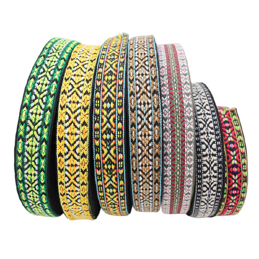 Текстильная галантерейная тесьма из синтетических волокон с вышивкой (рисунок односторонний). Яркое нарядное цветовое сочетание ленты украсит ваше изделие.