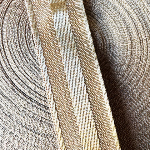 Плотная ременная лента из синтетических волокон, имитация нейлона, с атласным блеском.