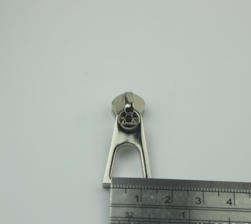 Металлические бегунки для рулонных молний №5 с пуллером в форме рыбьего хвоста, имеющим выемку. Благодаря данному отверстию можно удлинить "язычок" за счет дополнительных деталей из кожи и пр. материалов