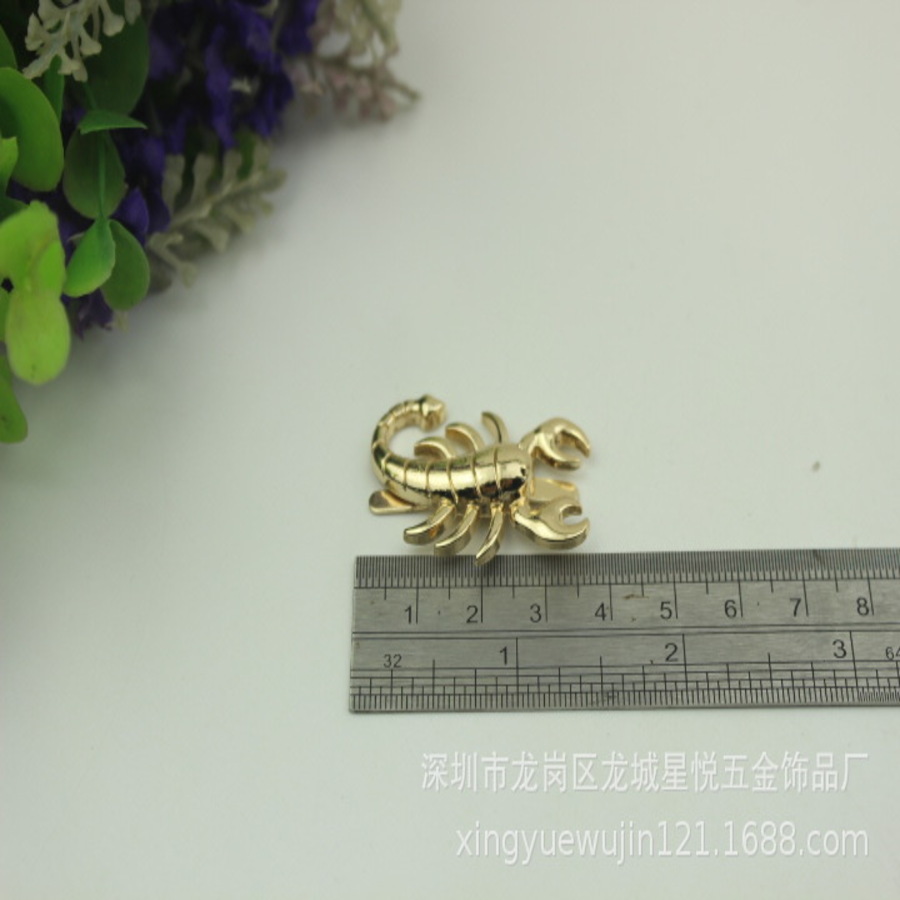 Металлические украшения для кожгалантерейных изделий - декоративные зажимы в виде краба и скорпиона.